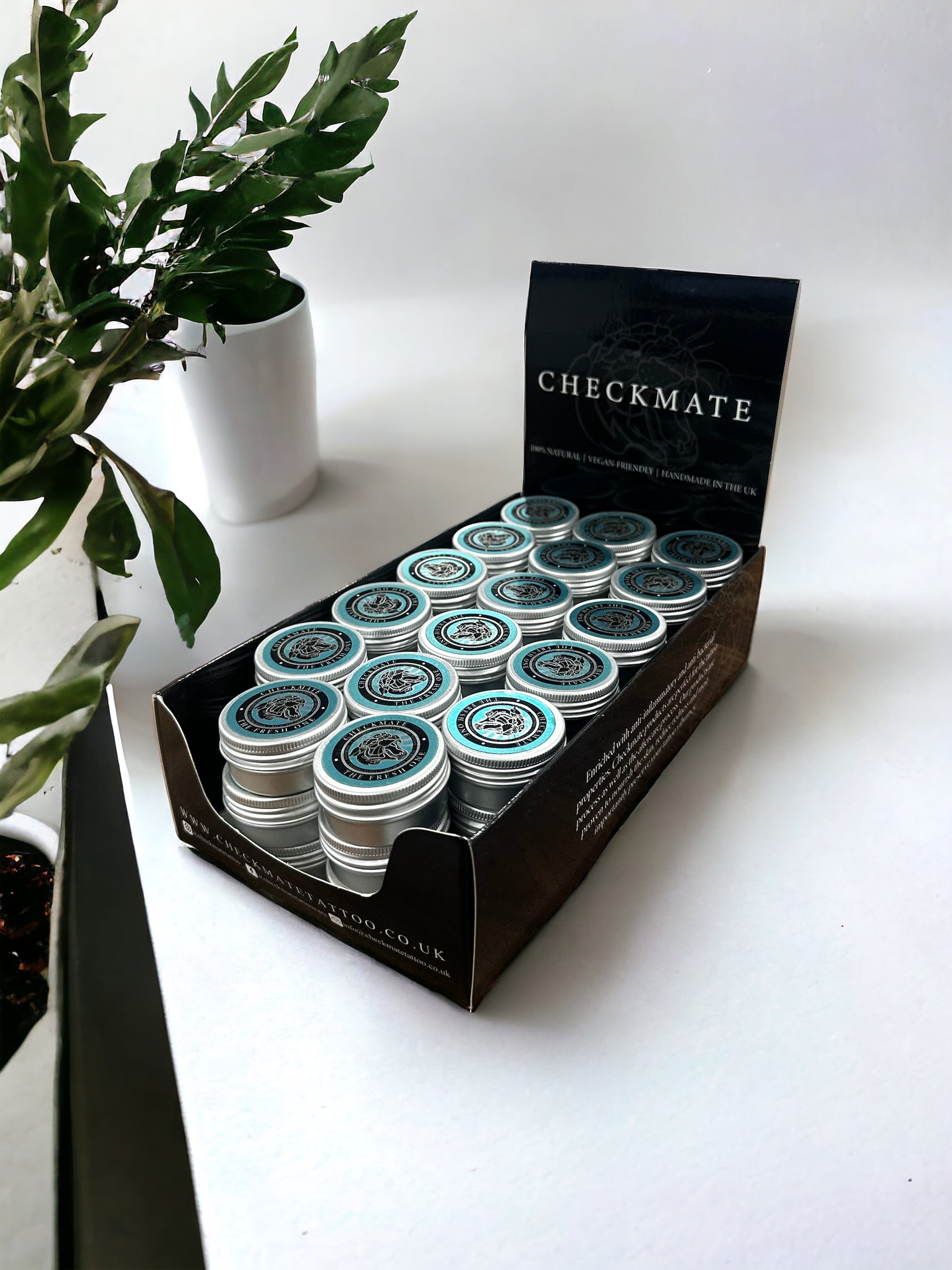 Make sure your clients eliminate the risk of poor healing tattoos by selling or giving them a Checkmate mini to take with them, this size is perfect for the smaller tattoos, not recommended for the larger pieces, check out our 16x50ml reseller bundle.